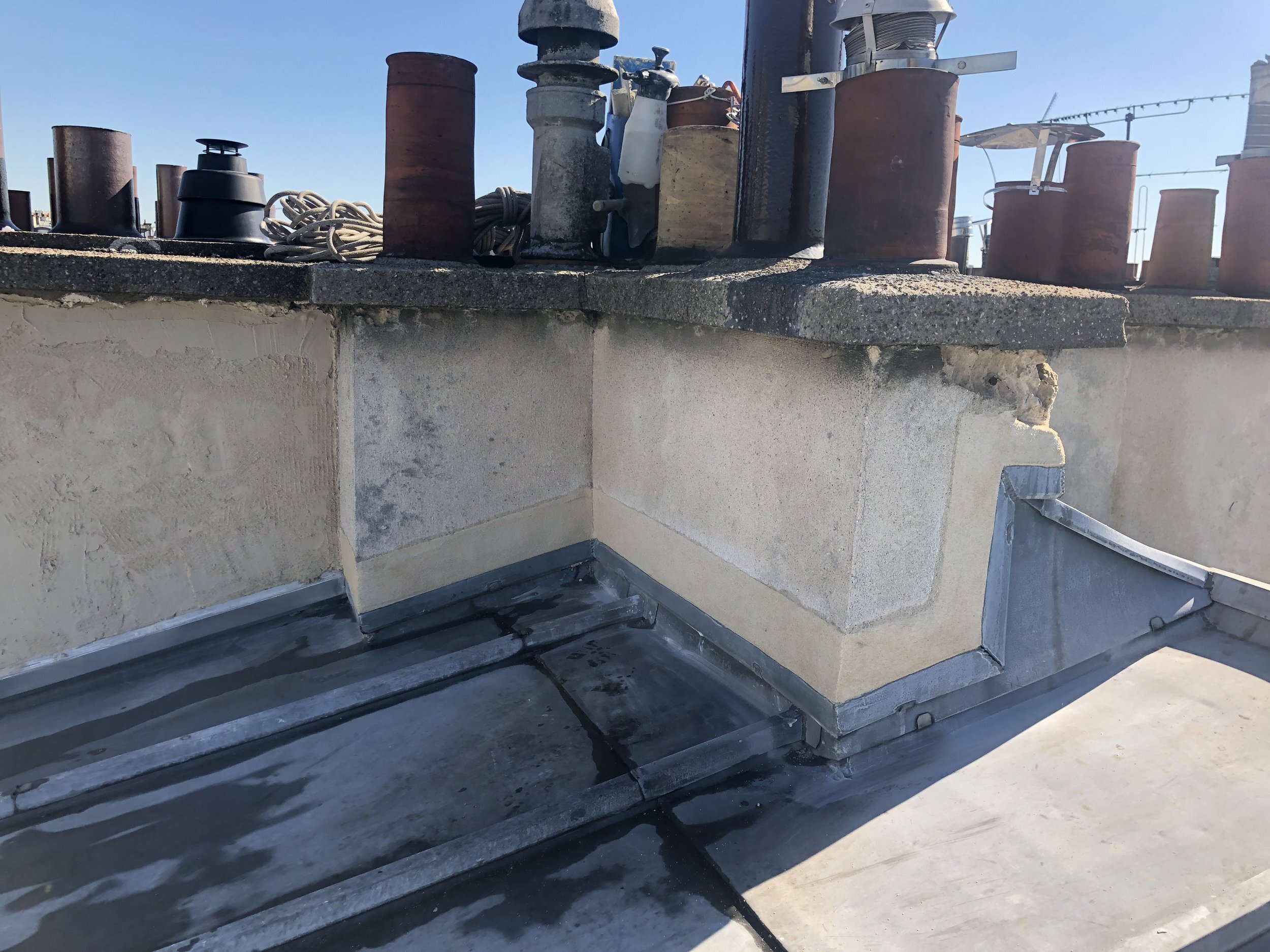 en rénovant la zone de toiture concernée pour régler définitivement le problème.